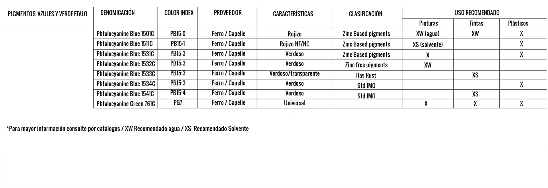 AMARILLO DE CROMO NARANJA DE MOLIBDENO OXIDOS DE HIERRO AZUL ULTRAMAR VIOLETA ULTRAMAR FERRITAS DE ZINC OXIDO DE CROMO VANADATO DE BISMUTO